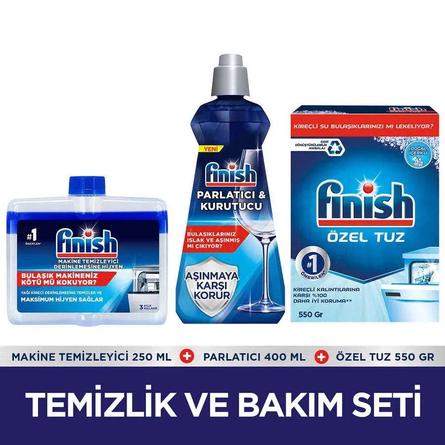 Finish Temizlik Ve Bakım Seti (Parlatıcı 400 ML+Makine Temizleyici Sıvı 250 ML+Tuz 500 GR)