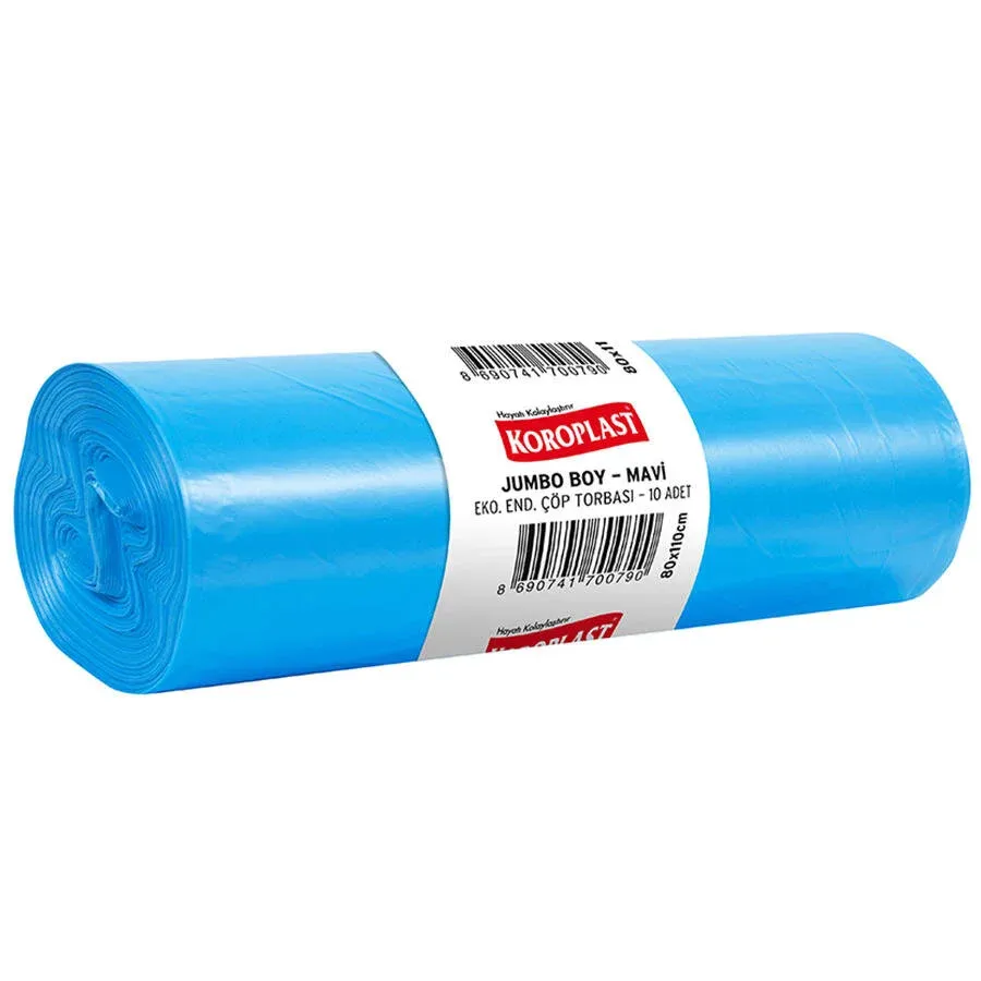 Koroplast Çöp Torbası Eko Endüstriyel Jumbo Boy 80 cm x 110 cm Mavi 10'lu Paket